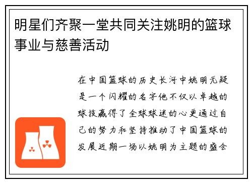 明星们齐聚一堂共同关注姚明的篮球事业与慈善活动