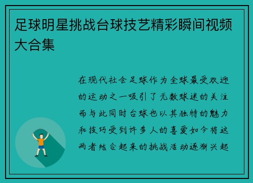 足球明星挑战台球技艺精彩瞬间视频大合集