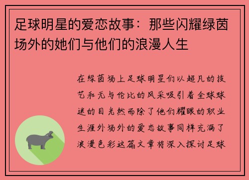 足球明星的爱恋故事:那些闪耀绿茵场外的她们与他们的浪漫人生