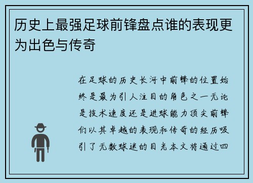 历史上最强足球前锋盘点谁的表现更为出色与传奇